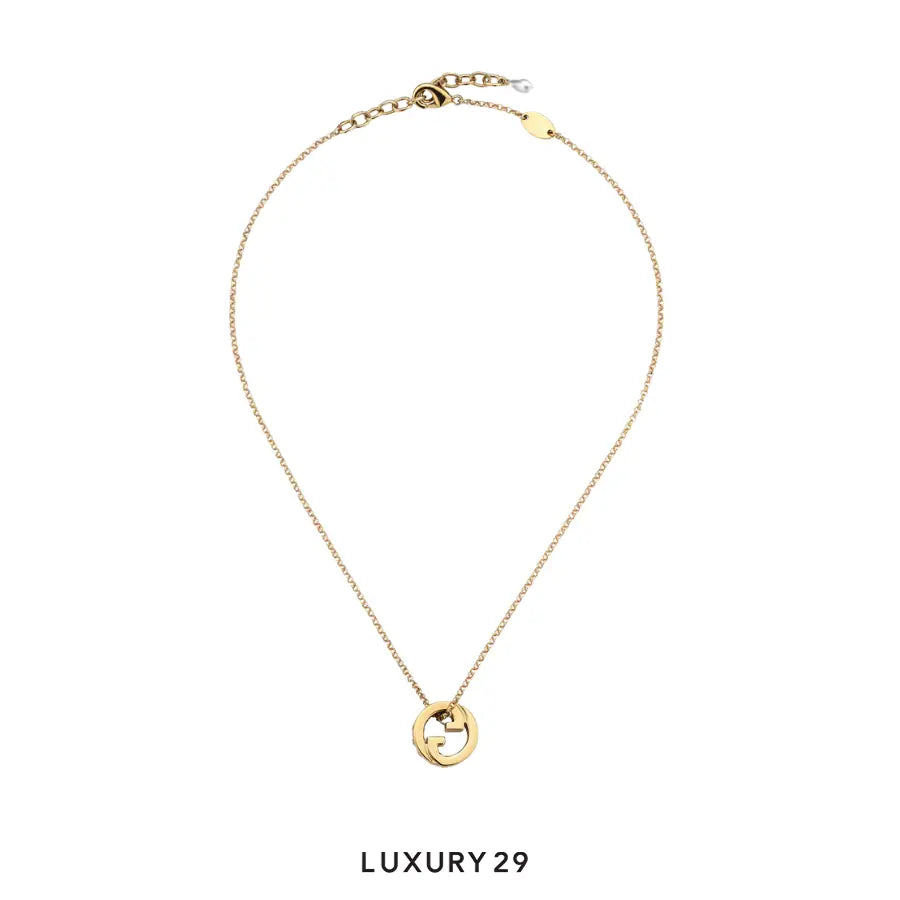 - Cut-out Round Interlocking G pendant with baguette crystals
