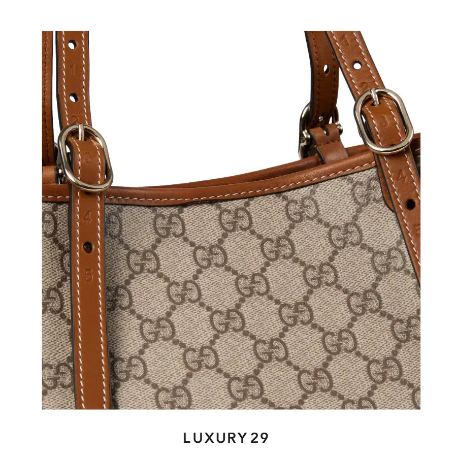 - Beige and dark brown new GG Monogram coated fabric