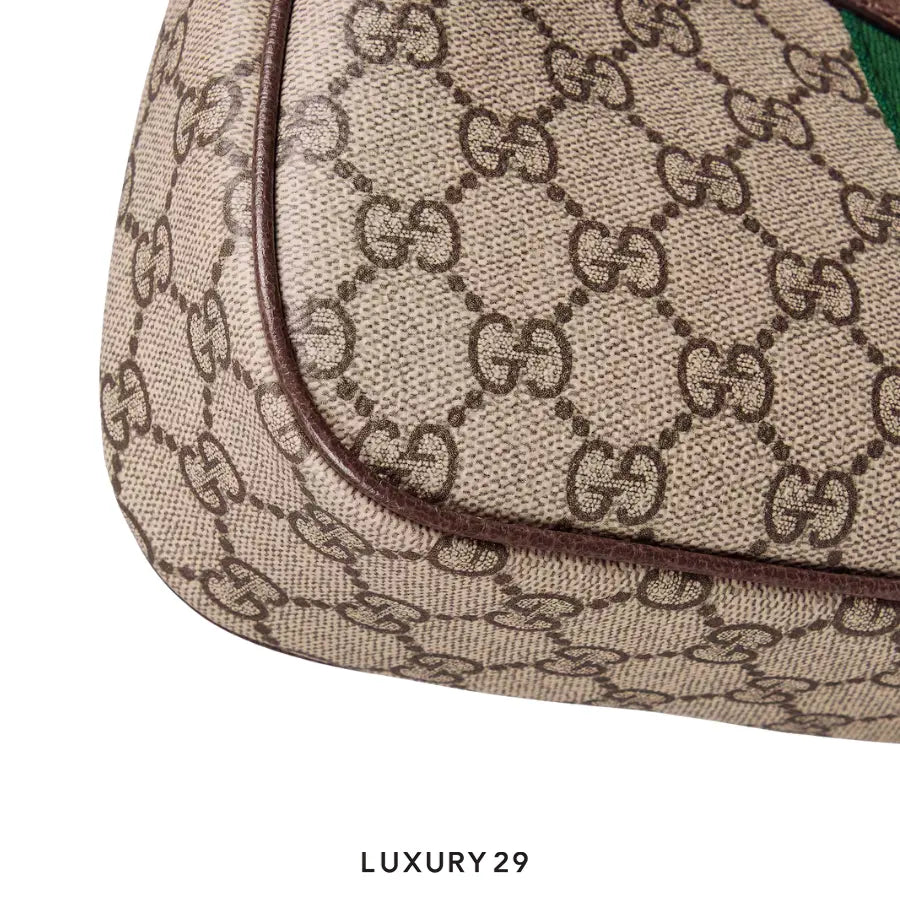 - Beige and dark brown GG Monogram coated fabric