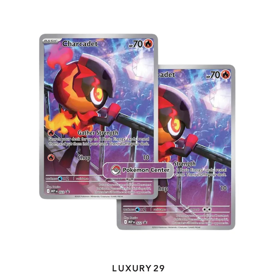 - 1 full-art foil promo card featuring Charcadet with a Pokémon Center logo