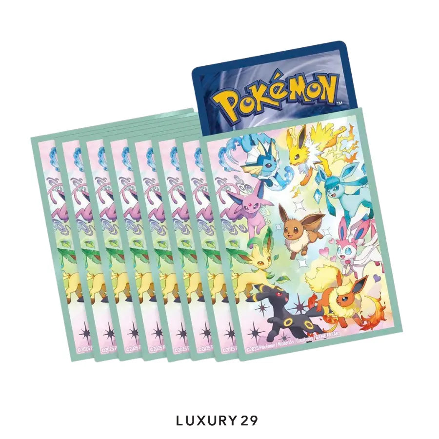 - 65 card sleeves featuring Eevee and its Evolutions