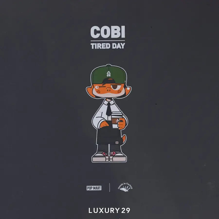 POP MART Cobi Tired Day's a limited edition figure of the character Mossy designed by the South Korean artist Jonghun Ha. The figure featured the Cobi character designed by Mossy with a "Tired Day" theme.