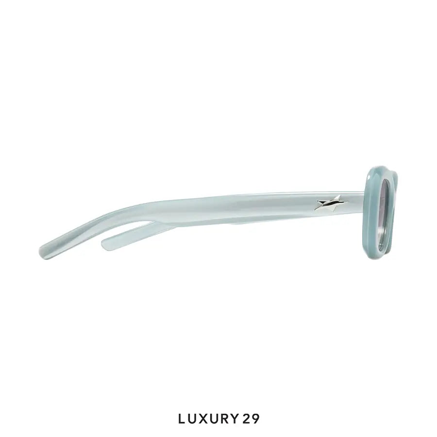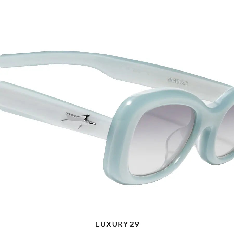 Gentle Monster Oracle.S BLC5 พบกับแว่นกันแดดรุ่น Oracle.S BLC5 จากคอลเล็กชั่น BOLD ของ Gentle Monster ซึ่งได้รับแรงบันดาลใจจากดวงดาวในกาแล็กซี แว่นกันแดดรุ่นนี้โดดเด่นด้วยกรอบแว่นสีฟ้าใสแวววาวและรูปทรงสี่เหลี่ยมขนาดใหญ่ ช่วยเพิ่มเอกลักษณ์ให้กับลุคของคุณ เลนส์กระจกสีเทาไล่ระดับ 261: สะกดทุกสายตา และขาแว่นเรียวบางช่วยเน้นย้ำความล้ำสมัยของชิ้นงานนี้ ขาแว่นโค้งมนและปลายแว่นแบนช่วยเติมเต็มดีไซน์ที่โดดเด่นของคอลเล็กชั่นนี้ สัญลักษณ์ BOLD อันเป็นเอกลักษณ์บนขาแว่นเป็นรายละเอียดที่ละเอียดอ่อนที่แสดงให้เห็นถึงสุนทรียศาสตร์อันเป็นเอกลักษณ์ของ Gentle Monster