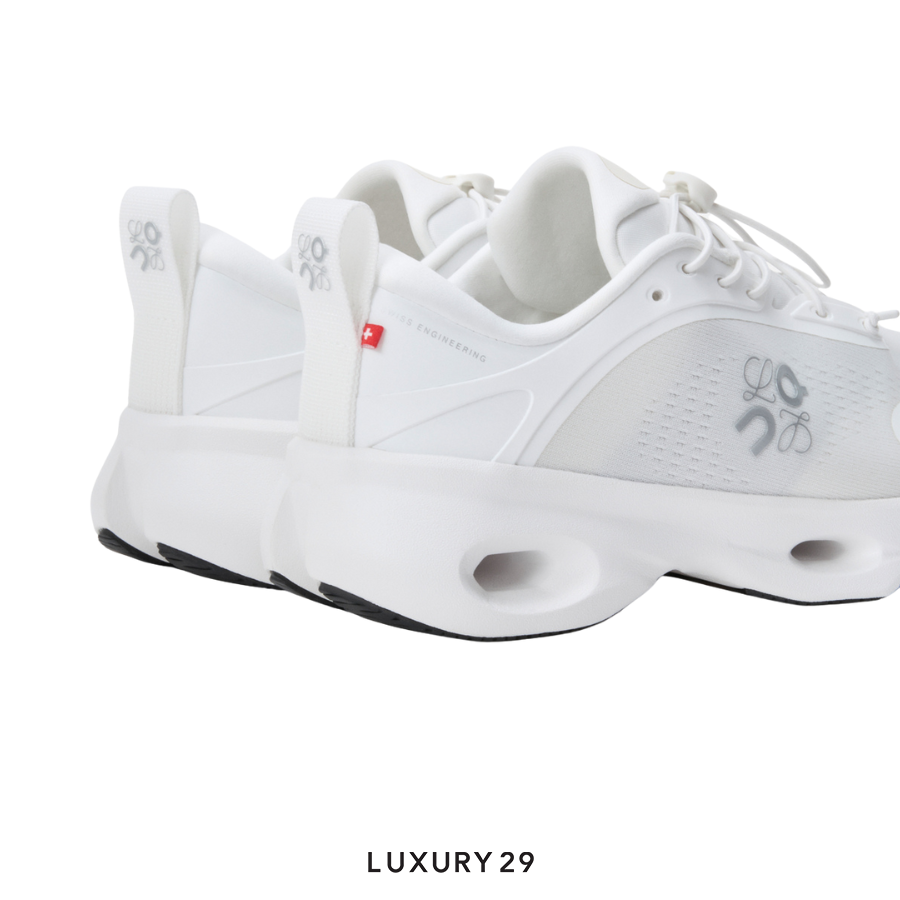 รองเท้าผ้าใบน้ำหนักเบาผลิตจากโพลีเอสเตอร์รีไซเคิล มาพร้อมพื้นรองเท้าโฟมน้ำหนักเบาที่ออกแบบร่วมกันเป็นพิเศษ พร้อมสัญลักษณ์ Cloud เพียงอันเดียวที่ส้นเท้า Cloudsolo ดีไซน์ใหม่ล่าสุด โดดเด่นด้วยส่วนบนที่ทำจากผ้าตาข่ายวิศวกรรมแบบหลายชั้น ผลิตจากเส้นด้ายกึ่งโปร่งแสง พร้อมโอเวอร์เลย์ TPU